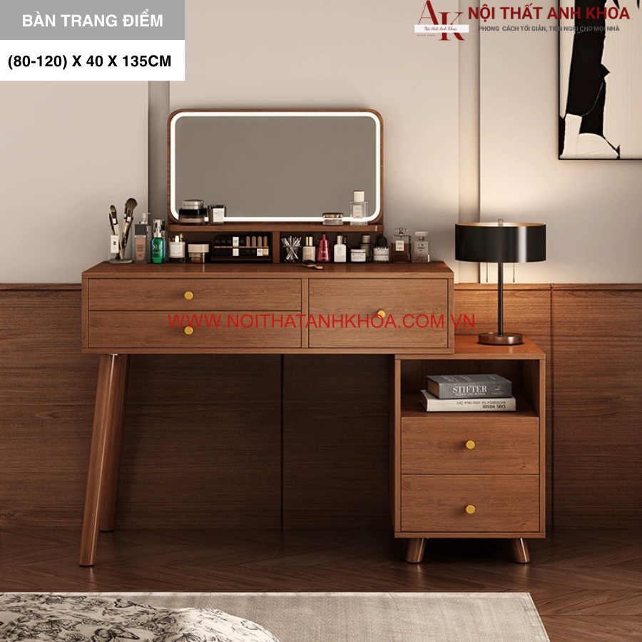 Trong cuộc sống hiện đại, một chiếc bàn phấn không chỉ đơn thuần là nơi trang điểm mà còn là "vũ khí bí mật" giúp phái đẹp tự tin tỏa sáng mỗi ngày. Bàn phấn gỗ công nghiệp hiện đại màu óc chó tại nội thất Anh Khoa chính là sự lựa chọn hoàn hảo dành cho những quý cô yêu thích sự sang trọng, tiện nghi. Với thiết kế tinh tế, chất liệu bền bỉ và công năng thông minh, sản phẩm không chỉ giúp không gian trở nên gọn gàng, hiện đại mà còn là trợ thủ đắc lực trong việc chăm sóc sắc đẹp, giúp chị em luôn rạng rỡ và cuốn hút.