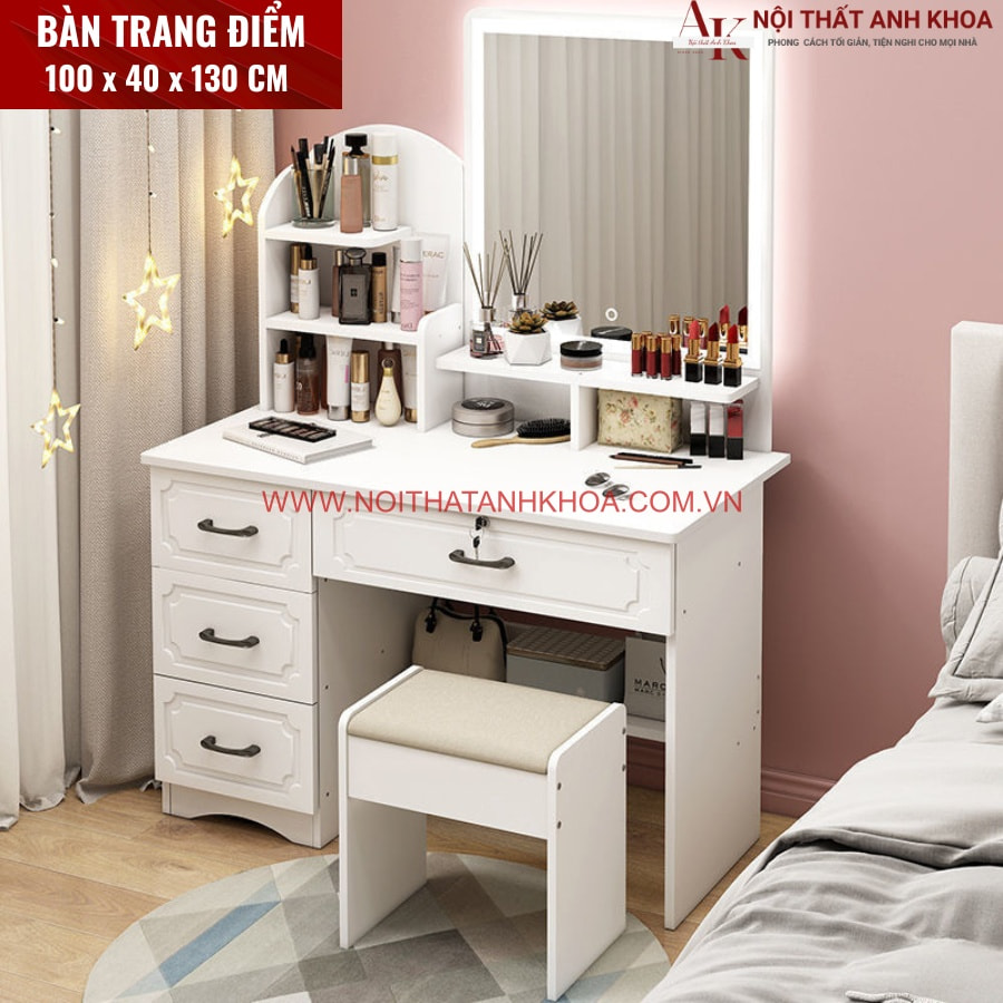 Đừng chỉ dừng lại ở việc mơ ước về một góc làm đẹp xịn xò! Chiếc bàn trang điểm màu trắng BTDAK_065 không chỉ là một món đồ nội thất, mà còn là khởi nguồn của sự tự tin và cảm hứng mỗi ngày.