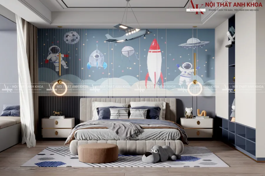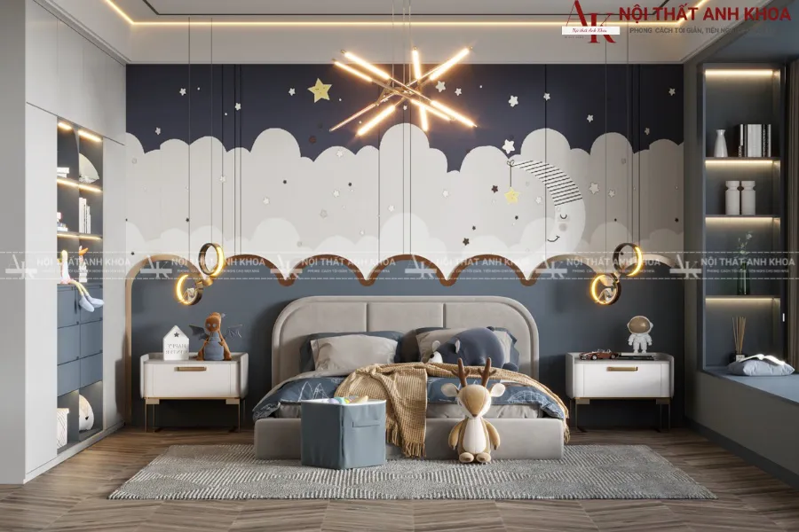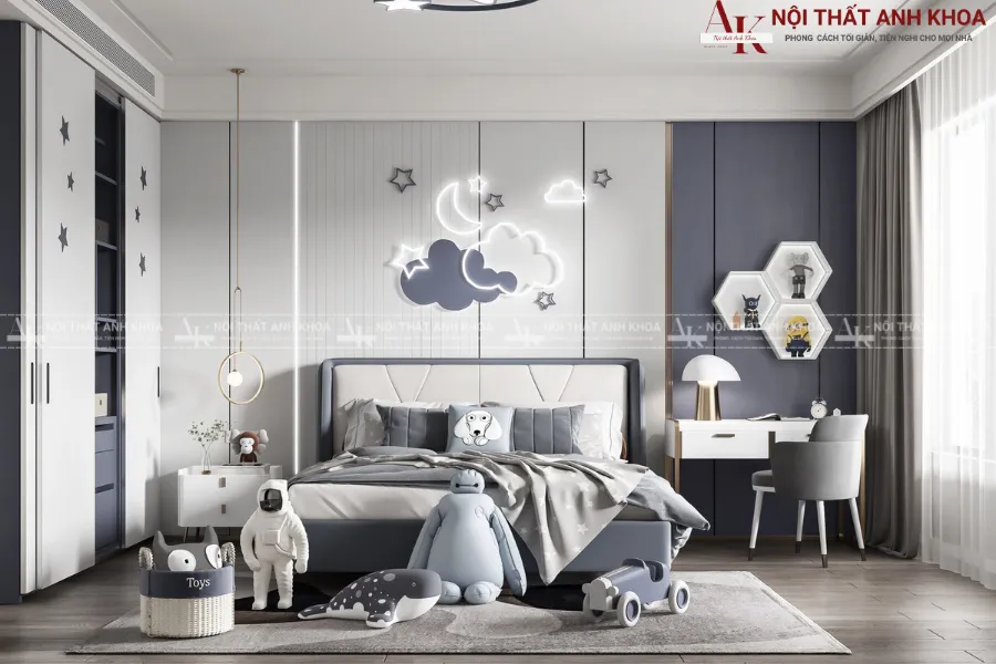 Hiểu được điều đó, nội thất Anh Khoa mang đến những giải pháp thiết kế combo nội thất phòng ngủ bé trai hiện đại, đáp ứng hoàn hảo sự cân bằng giữa thẩm mỹ tinh tế và công năng vượt trội, giúp cha mẹ kiến tạo không gian lý tưởng cho con yêu.