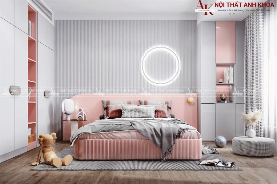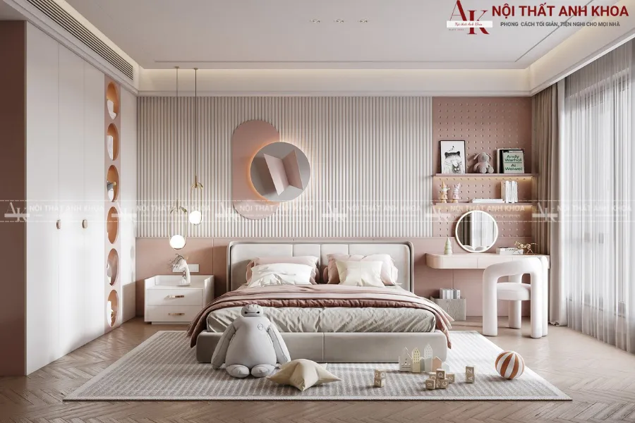 Nếu bạn đang ấp ủ dự định kiến tạo một không gian mơ ước cho cô con gái yêu, nội thất Anh Khoa chính là địa chỉ đáng tin cậy. Với đội ngũ thiết kế sáng tạo và xưởng sản xuất trực tiếp, chúng tôi chuyên thiết kế và thi công phòng ngủ bé gái hiện đại, tinh tế, đảm bảo tối ưu công năng và an toàn tuyệt đối cho trẻ. Hãy để chúng tôi đồng hành cùng bạn viết nên câu chuyện tuổi thơ ngọt ngào cho bé.