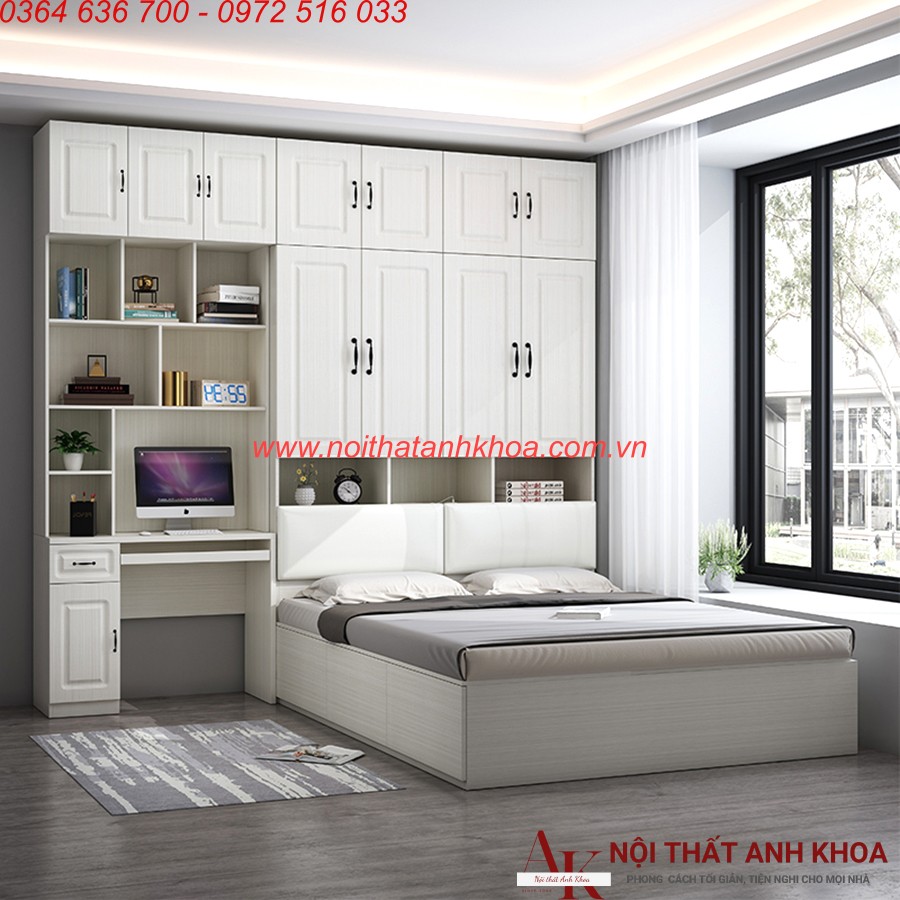 Để tiết kiệm diện tích cho căn phòng ngủ của bạn, Combo Phòng Ngủ Gỗ Công Nghiệp Thông Minh Hiện Đại là sự kết hợp hoàn hảo giữa các món đồ nội thất thiết yếu như giường ngủ, bàn làm việc và tủ quần áo. Combo này mang đến cho bạn sự tiện nghi trong quá trình sử dụng nhờ những ưu điểm vượt trội nâng tầm không gian sống của bạn. Hãy đến với Nội Thất Anh Khoa để lựa chọn combo phòng ngủ phù hợp đáp ứng được nhu cầu và sở thích của bạn để kiến tạo một căn phòng ngủ của mình trở nên hoàn hảo hơn và có thể thư giãn, tận hưởng những giây phút nghỉ ngơi trọn vẹn nhất, chúng tôi sẽ giúp bạn tìm hiểu một số thông tin của sản phẩm này để bạn có nhiều lựa chọn hơn nhé!