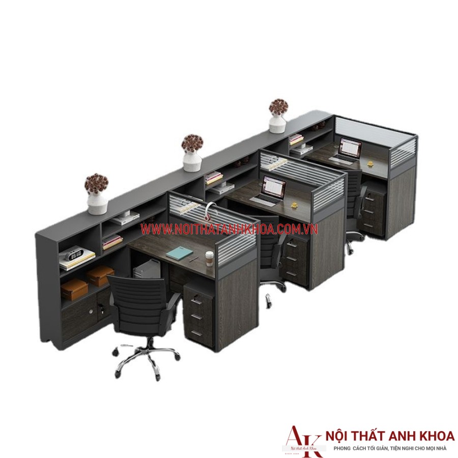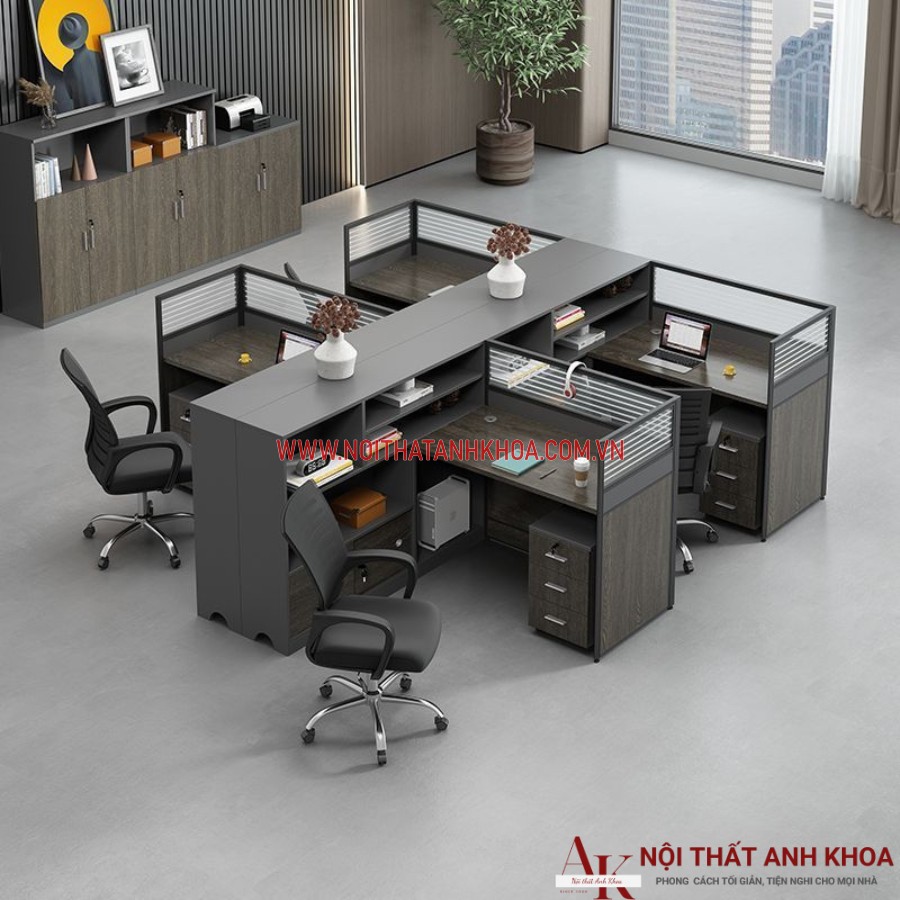 Linh hoạt trong bố trí: Dễ dàng kết hợp nhiều cụm bàn lại với nhau để tạo thành không gian làm việc cho 8, 12 hoặc nhiều nhân viên hơn, phù hợp với mọi quy mô phòng ban.