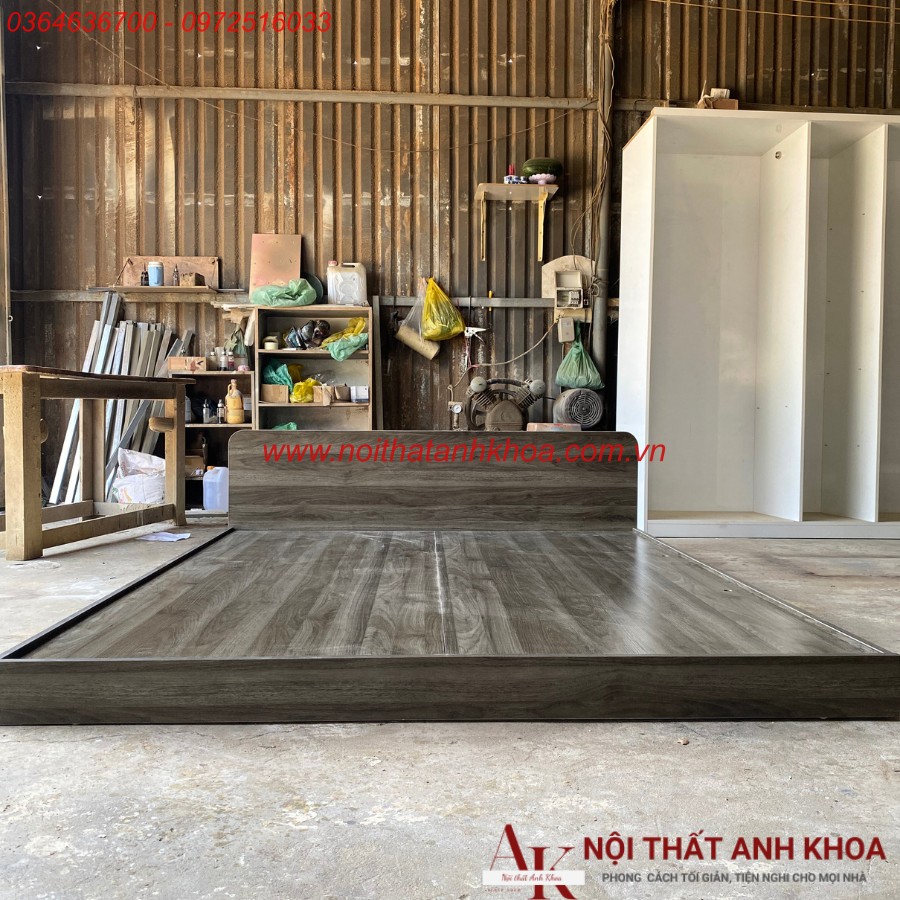1. Chi tiết sản phẩm giường ngủ bệt giá rẻ gỗ công nghiệp màu xanh rêu