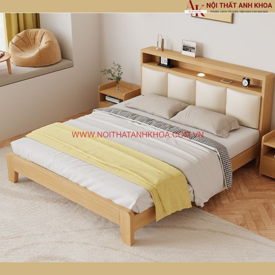 Trong không gian sống hiện đại, giường ngủ không chỉ là nơi nghỉ ngơi mà còn là điểm nhấn tinh tế, thể hiện gu thẩm mỹ và phong cách của gia chủ. Tại nội thất Anh Khoa, chúng tôi tự hào giới thiệu “Giường ngủ cao cấp gỗ tự nhiên đẹp hiện đại”, sự kết hợp hoàn hảo giữa chất liệu gỗ tự nhiên thượng hạng, thiết kế tinh xảo và phong cách đương đại. Sản phẩm không chỉ mang đến sự thoải mái tối ưu mà còn nâng tầm không gian phòng ngủ, biến giấc mơ về một tổ ấm sang trọng và ấm cúng của bạn thành hiện thực.