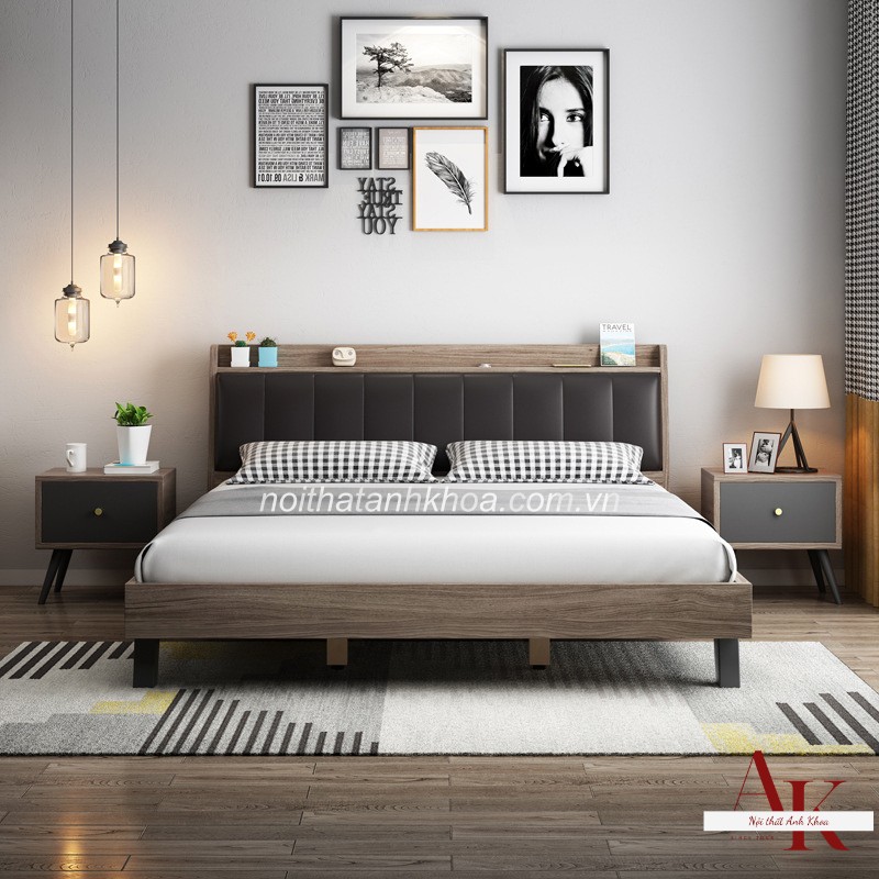 Giường ngủ gỗ công nghiệp MDF của Nội Thất Anh Khoa có kệ là một trong những mẫu giường ngủ hiện đại được nhiều gia đình lựa chọn hiện nay. Mẫu giường này có thiết kế hiện đại, tiện lợi, mang đến nhiều lợi ích cho người sử dụng. Thiết kế giường có kệ giúp tiết kiệm không gian, mang đến sự gọn gàng, ngăn nắp cho phòng ngủ. Kệ đầu giường có thể được sử dụng để đặt đồ đạc cá nhân, đèn ngủ,... Kệ cuối giường có thể được sử dụng để đặt chăn, ga, gối,...