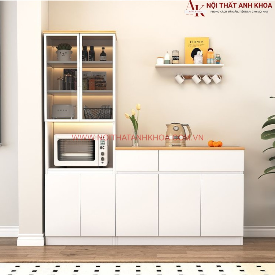 Trong nhịp sống hiện đại, một căn bếp gọn gàng, tiện nghi và thẩm mỹ không chỉ giúp tiết kiệm thời gian mà còn truyền cảm hứng cho từng bữa cơm gia đình. Hiểu được điều đó, nội thất Anh Khoa trân trọng giới thiệu đến bạn mẫu kệ tủ đựng chén bát và lò vi sóng đẹp hiện đại - Giải pháp lưu trữ thông minh, tối ưu không gian và nâng tầm phong cách sống. Với thiết kế tinh tế, đa năng và chất liệu cao cấp, sản phẩm hứa hẹn sẽ là điểm nhấn hoàn hảo cho căn bếp của bạn.