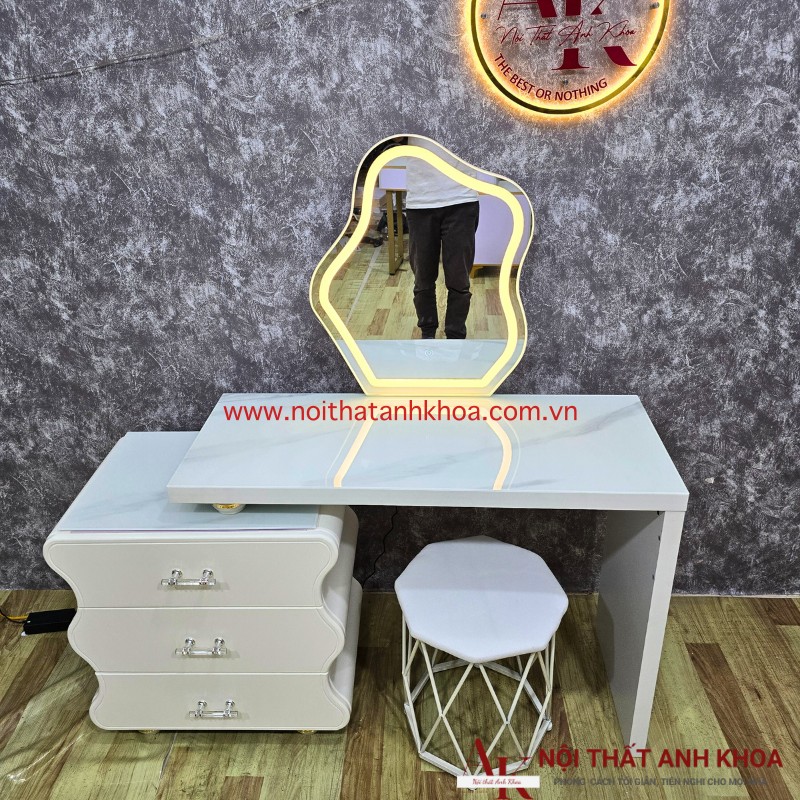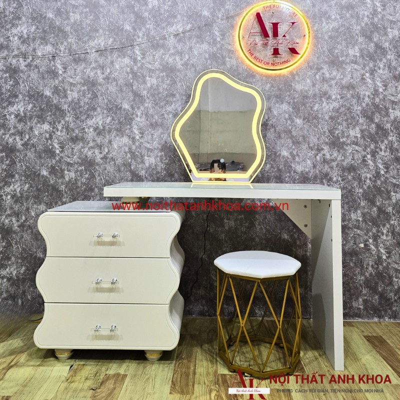 Trong không gian sống hiện đại khi mà cuộc sống chúng ta ngày càng phát triển và vật chất ngày càng được quan tâm, sự kết hợp giữa thẩm mỹ và tiện ích luôn là tiêu chí hàng đầu khi lựa chọn trong nội thất. Bàn trang điểm không chỉ là một món đồ nội thất thông thường, mà còn là biểu tượng của sự chăm sóc bản thân và phong cách sống tinh tế. Với thiết kế đa dạng và tính năng tiện ích Mẫu Bàn Trang Điểm Đẹp Gỗ MDF Màu Trắng Sang Trọng Hiện Đại có thể giúp bạn sắp xếp gọn gàng các sản phẩm làm đẹp, tạo nên một không gian trang nhã và đầy cảm hứng. Bàn trang điểm thông minh không chỉ đơn thuần là nơi lưu trữ mỹ phẩm và dụng cụ làm đẹp, mà còn được tích hợp nhiều tính năng công nghệ cao giúp tối ưu hóa quá trình chăm sóc sắc đẹp hàng ngày của bạn. Hãy cùng Nội Thất Anh Khoa tìm hiểu xem lý do tại sao nó đang trở thành xu hướng không thể thiếu trong không gian sống hiện đại của bạn thông qua những thông tin dưới đây nhé.