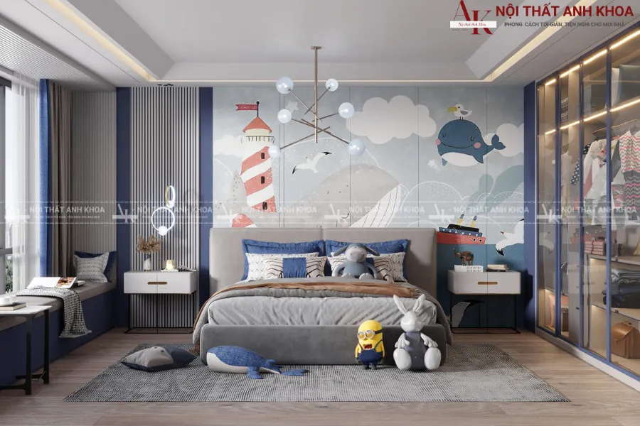 Không gian phòng ngủ không chỉ là nơi nghỉ ngơi mà còn là thế giới riêng, nơi nuôi dưỡng sự sáng tạo và định hình tính cách của trẻ. Thấu hiểu điều đó, các bậc phụ huynh ngày càng đầu tư hơn vào việc thiết kế một không gian sống hoàn hảo cho con trai yêu. Bài viết này của nội thất Anh Khoa sẽ giới thiệu những mẫu thiết kế phòng ngủ bé trai cao cấp, đẹp và tiện nghi, hứa hẹn sẽ là nguồn cảm hứng tuyệt vời cho bạn.
