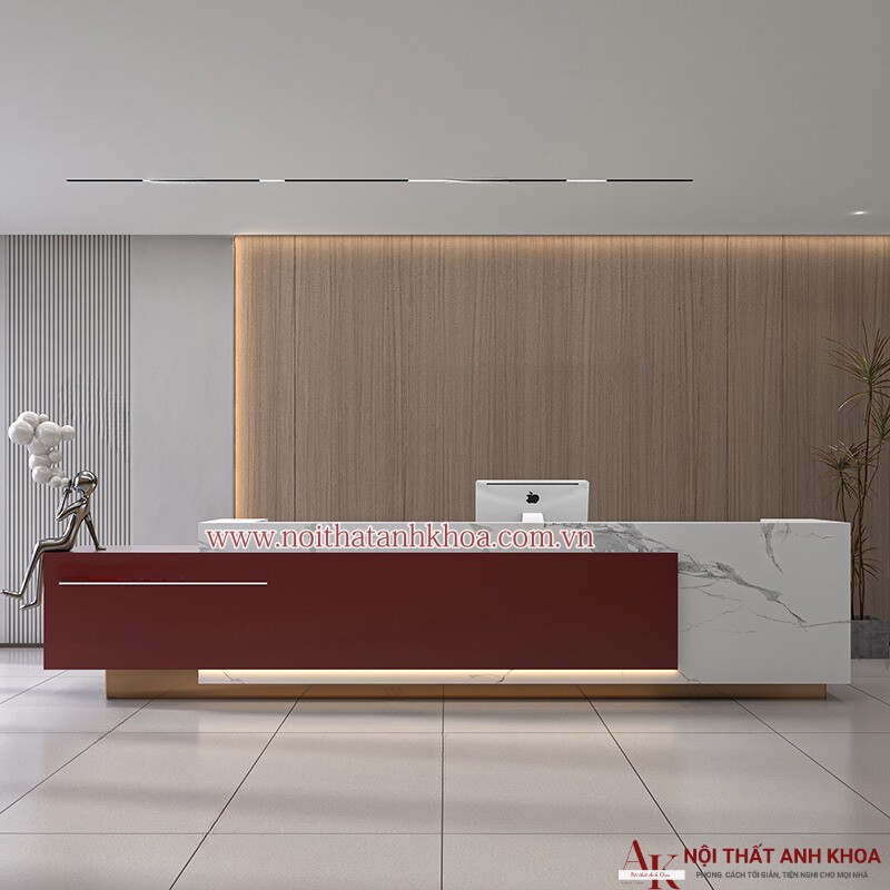 Quầy lễ tân tại Anh Khoa cam kết chất lượng và chính sách bán hàng vô cùng hấp dẫn. Sản phẩm được sản xuất từ những chất liệu cao cấp, đảm bảo độ bền chắc, chống trầy xước và bền bỉ, giúp duy trì vẻ đẹp theo thời gian.
