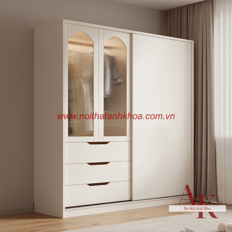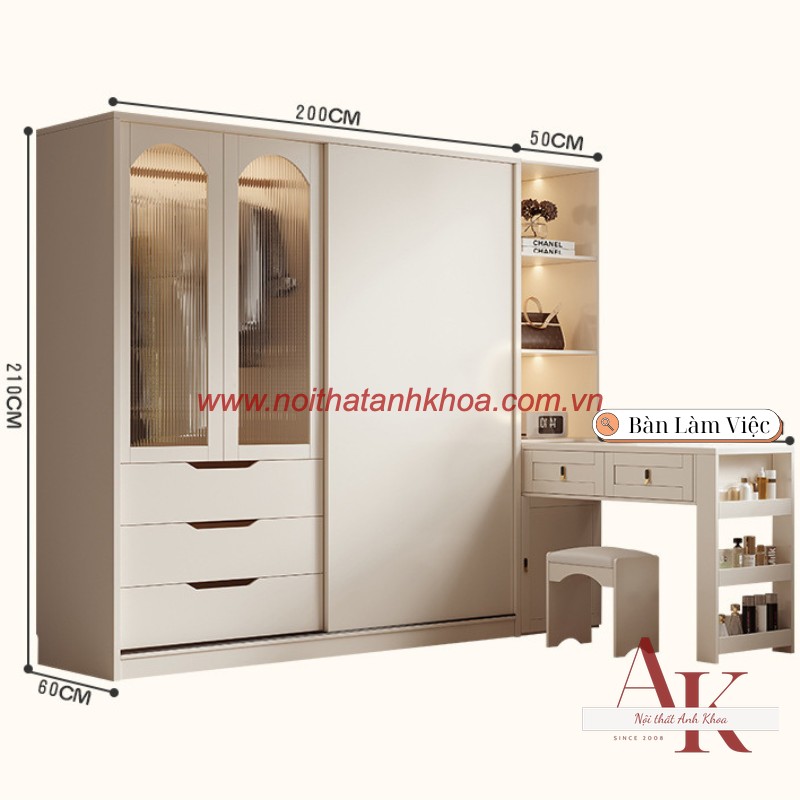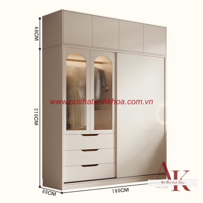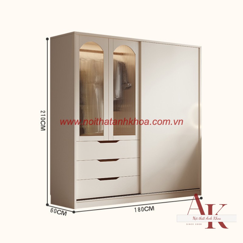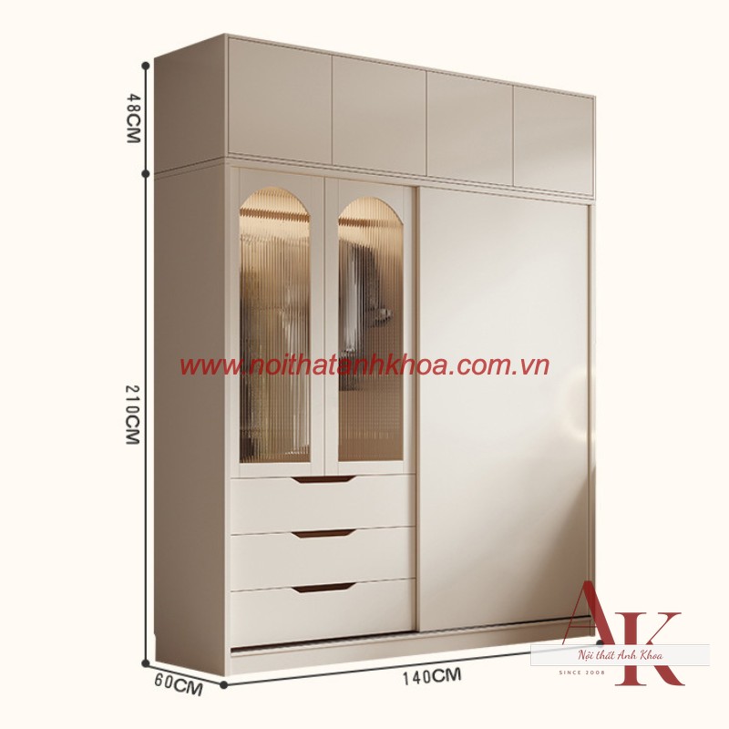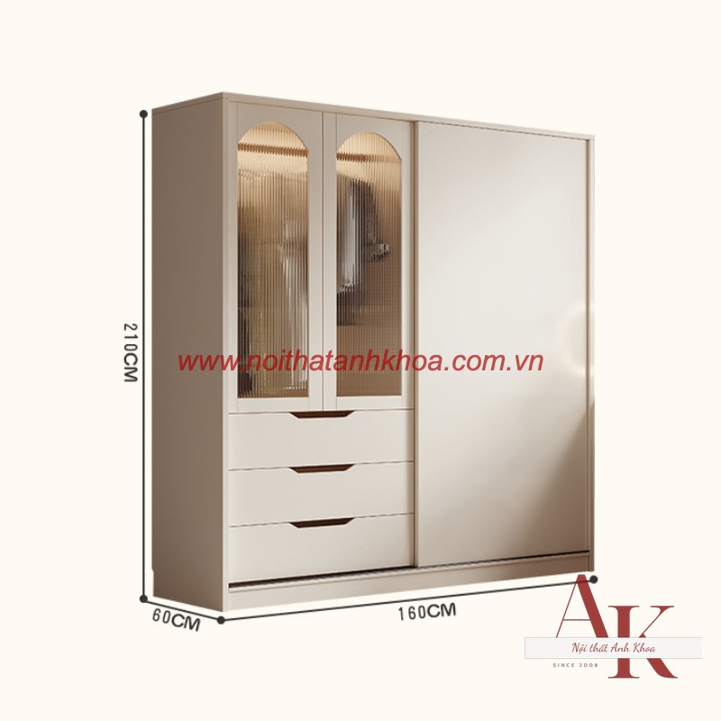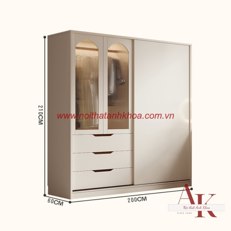 Khách hàng có thể lựa chọn kích thước tủ quần áo cánh kính phù hợp với diện tích phòng ngủ của mình thông qua đội ngũ nhân viên của Nội Thất Anh Khoa. Chúng tôi có thể hỗ trợ thiết kế và đo đạc cho quý khách hàng nếu khách hàng muốn.