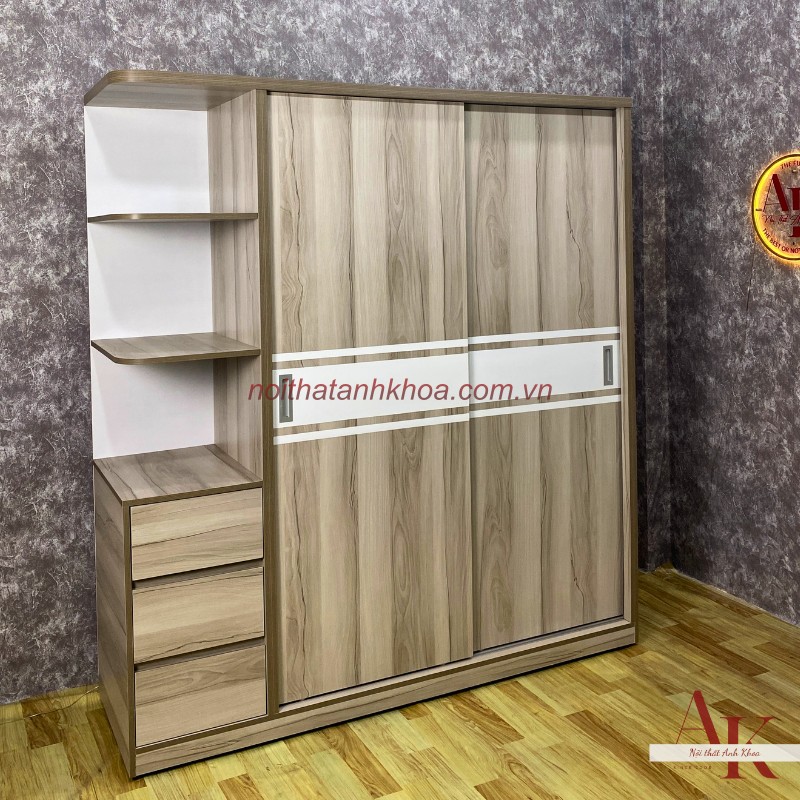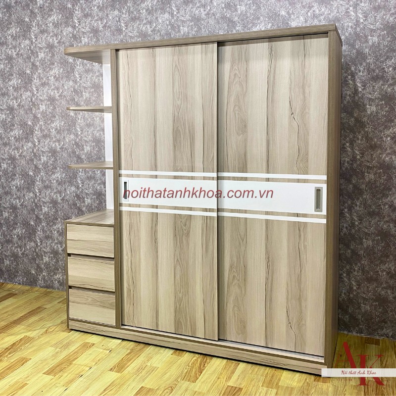 Tủ Quần Áo Cửa Lùa Phối Sọc Trắng Có Kệ Cao Cấp Hiện Đại |